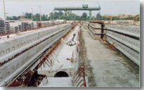 混凝土預(yù)制構(gòu)件生產(chǎn):可生產(chǎn)各類(lèi)混凝土預(yù)制構(gòu)件,能夠獨(dú)立承擔(dān)各種大型的混凝土構(gòu)件、橋梁橋板的施工生產(chǎn)任務(wù),生產(chǎn)各種規(guī)格的陶??招拇u,制作混凝土模具、模板。先后完成了濰坊市市民健身中心體育場(chǎng)看臺(tái)板制作,為濟(jì)青、濰萊、東紅、京福高速公路及高密華達(dá)立交橋、濰坊市區(qū)大中橋梁生產(chǎn)構(gòu)件近10萬(wàn)方,為濰坊市級(jí)機(jī)關(guān)綜合辦公大樓、濰坊大酒店等工程生產(chǎn)疊合板等。 |