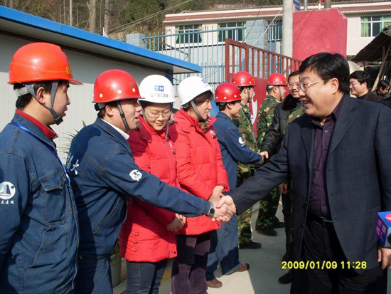 鐘少林視察集團(tuán)公司援川工程慰問(wèn)現(xiàn)場(chǎng)人員 (09.01.10)