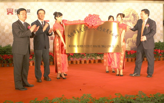 1月22日上午,由集團公司控股設(shè)立的濰坊市奎文區(qū)民興小額貸款有限公司,在濰坊國際金融大廈舉行了隆重的開業(yè)儀式。參加開業(yè)慶典儀式的有山東省財政廳副廳長龐敦之及民生銀行山東省分行行長馬琳,濰坊市人民政府副市長夏芳晨及市金融辦、市財政局、市銀監(jiān)局、市人民銀行等市直單位、部門負責人,奎文區(qū)委副書記、區(qū)長李輝,副區(qū)長賈平及奎文區(qū)金融辦負責人,市工商銀行、中國銀行、交通銀行、農(nóng)信聯(lián)社、中信銀行、招商銀行、農(nóng)業(yè)銀行、建設(shè)銀行、濰坊銀行、華夏銀行、民生銀行、浦發(fā)銀行等市銀行系統(tǒng)負責人,駐奎文區(qū)的金融機構(gòu)中國銀行、工商銀行、建設(shè)銀行、濰坊商行、農(nóng)業(yè)銀行、新華路農(nóng)信聯(lián)社等負責人,泰華集團、博悅地產(chǎn)、東方鋼管、中百集團等集團公司重要客戶主要負責人,華和擔保公司、巨鑫擔保公司、水建總公司、恒泰擔保公司、泰翔商貿(mào)公司、奇正商務(wù)咨詢公司、博揚投資咨詢公司、吾愛設(shè)計有限公司、南京龍蟠石化濰坊分公司、速比達連鎖汽修總經(jīng)理等重要相關(guān)客戶,濰坊市建設(shè)局局長李廣東及局領(lǐng)導(dǎo)班子全體、局機關(guān)各科室主要負責人、局屬各單位主要負責人,集團公司董事長、民興小額貸款公司董事長徐鵬強,民興小額貸款公司股東單位負責人,集團公司高管層領(lǐng)導(dǎo)滕忠斌、李坤明、姜建魯、穆乃杰、張學(xué)智、閆鵬,總經(jīng)理助理張修雙、譚瑞明,總部部門負責人、各基層單位(子公司)經(jīng)理書記共計170余人參加了開業(yè)慶典儀式。 ![]() 市金融辦主任李傳順宣讀省金融辦同意公司設(shè)立方案的批復(fù) ![]() 董事長徐鵬強匯報公司籌建情況 ![]() 奎文區(qū)區(qū)委副書記、區(qū)長李輝致辭 ![]() 濰坊市副市長夏芳晨講話 ![]() 省財政廳廳長龐敦之、民生銀行省分行行長馬琳、副市長夏芳晨揭牌