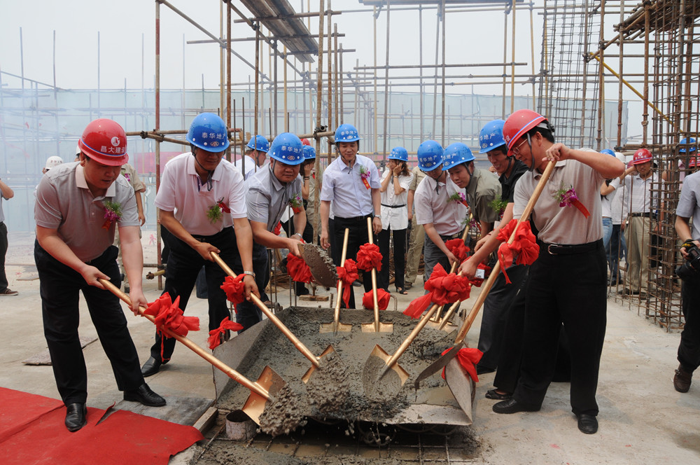 6月16日上午11時16分,由第二分公司承建的泰華城•榮觀華府工程舉行了主體封頂儀式。集團公司董事長徐鵬強、總經理朱九洲,建設單位泰華集團董事長劉云江,監(jiān)理單位董事長曹金彩等領導出席封頂儀式并為泰華城•榮觀華府工程裝填最后一車封頂砼。參加封頂儀式的還有來自建設單位、施工單位、監(jiān)理單位及參建單位的200多名代表。 泰華城•榮觀華府工程是濰坊市唯一的商業(yè)CBD項目,工程位于美麗的白浪河畔。本期項目總建筑面積216673平方米,工程基礎采用CFG復合地基,2m厚的筏板基礎,地下三層和地下二層為車庫,地下一層至四層為商業(yè),五層至二十九層為公寓。工程采用流線型設計,從空中看像游戈在白浪河中一條巨大的彩魚,從側面看像停泊在白浪河畔的一艘巨大的航母,1#東西塔樓像兩個巨大的風帆。該工程自2010年4月15日筏板基礎圖紙出具以后正式開工建設,第二分公司項目部組織人員搶工期,抓質量,保形象,克服了施工現(xiàn)場狹小、工程結構復雜、施工穿插組織難度大等各方面困難,歷時368天,以比原計劃工期提前26天的優(yōu)異成績封頂,同時實現(xiàn)優(yōu)質、安全,贏得了建設單位和監(jiān)理單位的高度稱贊。該工程的提前順利封頂,為昌大和泰華兩個集團公司以后的戰(zhàn)略合作夯實了基礎,埋設了基石,譜寫了輝章。