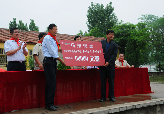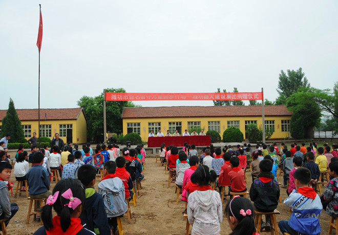 2013年5月29日上午,由裝飾分公司發(fā)起并聯(lián)合第四、第八分公司共同實(shí)施的員工為留守兒童捐建午餐食堂捐贈儀式在臨朐縣寺頭鎮(zhèn)春蕾小學(xué)舉行。三個(gè)捐建單位的領(lǐng)導(dǎo)班子成員和員工代表參加了捐贈活動。集團(tuán)公司對員工自發(fā)組織的這項(xiàng)活動給予了充分肯定和積極支持,監(jiān)事會主席、黨委副書記、紀(jì)委書記滕忠斌出席捐贈活動并在儀式上講話。集團(tuán)公司辦公室副主任、駐臨朐幫扶工作領(lǐng)導(dǎo)小組成員兼臨朐寺頭鎮(zhèn)大崮東村第一書記徐良本,受捐贈春蕾小學(xué)的200多名師生參加上述活動。捐贈儀式由臨朐縣寺頭鎮(zhèn)黨委書記瞿志敏主持。