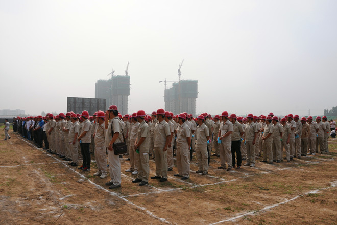 為切實推進施工現(xiàn)場消防安全管理,提高全員消防應(yīng)變能力,以實際行動開展好“六月安全月”活動,2013年6月5日上午,集團公司在高新區(qū)中央商務(wù)區(qū)施工現(xiàn)場組織了大型消防演練活動。來自各基層單位分管生產(chǎn)的經(jīng)理、工程管理人員,施工現(xiàn)場專職安全員,演練現(xiàn)場三個分公司的全體管理人員和勞務(wù)專業(yè)隊伍,高新區(qū)工程建設(shè)、總承包、監(jiān)理單位以及勞務(wù)分包單位代表等近1000人參加了演練活動。