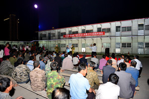2015年5月21日晚,主題為“中國夢?勞動美”濰坊市總工會職工藝術(shù)團慰問演出在集團中央商務(wù)區(qū)工地現(xiàn)場舉行。演出依托第四分公司實施,地點選擇了徐志明項目部辦公室室外小廣場。中央商務(wù)區(qū)的第二、第四、安裝、裝飾、第二裝飾、裝飾窗業(yè)分公司的工地員工代表、專業(yè)勞務(wù)工人現(xiàn)場觀看了演出。