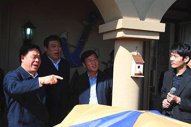 2012年10月18日上午,濰坊市委副書記、市長劉曙光在市政協(xié)副主席、市經(jīng)信委主任李傳恒的陪同下,率領(lǐng)市發(fā)改委、市財(cái)政局、市規(guī)劃局、市旅游局等有關(guān)部門負(fù)責(zé)人到昌樂參觀調(diào)研卡納圣菲項(xiàng)目。昌樂縣委書記、縣人大常委會主任張新強(qiáng),縣委副書記、縣長高立波陪同調(diào)研。集團(tuán)董事長徐鵬強(qiáng)陪同劉曙光參觀調(diào)研并就項(xiàng)目開發(fā)情況作了匯報(bào)。