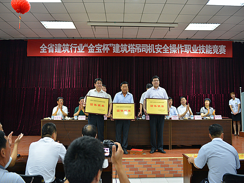 2014年6月19日,由山東省建設(shè)工會、山東省建筑安全監(jiān)督站、濰坊市建設(shè)局主辦,濰坊市質(zhì)量安全監(jiān)督站、金寶職業(yè)培訓(xùn)學(xué)校協(xié)辦的“山東省建筑行業(yè)‘金寶杯’建筑塔吊司機(jī)安全操作職業(yè)技能競賽在濰坊金寶職業(yè)培訓(xùn)學(xué)校圓滿落幕。集團(tuán)組隊(duì)代表濰坊市參加比賽,獲得團(tuán)體銀獎,操機(jī)手王來春榮獲個(gè)人金獎。