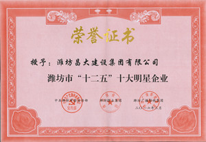 2016年3月18日晚,濰坊市“輝煌十二五”系列評(píng)選活動(dòng)頒獎(jiǎng)晚會(huì)在濰坊電視臺(tái)一樓800平米演播大廳舉行。晚會(huì)上,公布了各評(píng)選結(jié)果并進(jìn)行了頒獎(jiǎng)。濰坊市委副書(shū)記王獻(xiàn)玲,市委宣傳部部長(zhǎng)、高新區(qū)黨工委書(shū)記初寶杰以及毛秀鳳、潘強(qiáng)、李士來(lái)等市領(lǐng)導(dǎo)出席頒獎(jiǎng)典禮并為獲獎(jiǎng)?wù)哳C獎(jiǎng)。集團(tuán)總經(jīng)理朱九洲出席頒獎(jiǎng)晚會(huì),并代表集團(tuán)公司接受“全市十大明星企業(yè)”榮譽(yù)。出席頒獎(jiǎng)晚會(huì)的還有市發(fā)改委等部委、主辦單位領(lǐng)導(dǎo),各縣市區(qū)、市屬各開(kāi)發(fā)區(qū)黨(工)委宣傳部部長(zhǎng)等。 輝煌“十二五”系列評(píng)選活動(dòng),是按照市委主要領(lǐng)導(dǎo)意見(jiàn),市委宣傳部組織濰坊報(bào)業(yè)集團(tuán)、濰坊廣播影視集團(tuán)在全市范圍內(nèi)開(kāi)展的活動(dòng)。評(píng)選期間,集團(tuán)公司作為“全市十大明星企業(yè)”候選,受到社會(huì)廣泛關(guān)注和點(diǎn)擊投票,并獲總票數(shù)第二好成績(jī)。