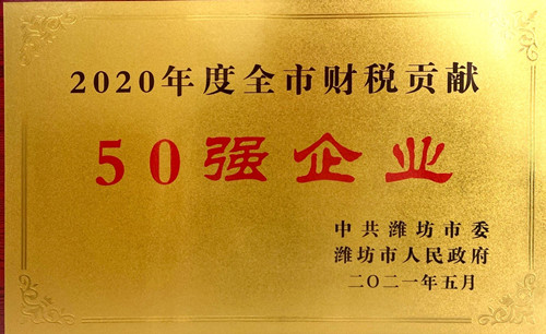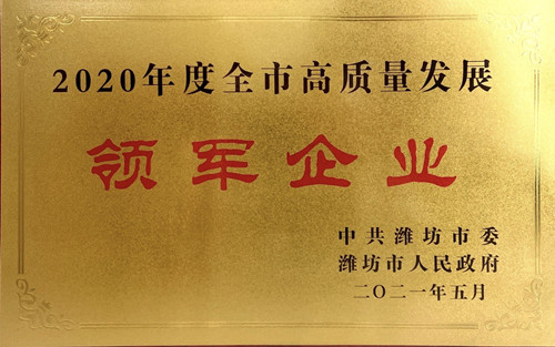 2021年5月11日,集團(tuán)辦公室將濰坊市委、市政府頒發(fā)的兩個重量級榮譽獎牌領(lǐng)回:2020年度全市財稅貢獻(xiàn)50強企業(yè);2020年度全市高質(zhì)量發(fā)展領(lǐng)軍企業(yè)。
