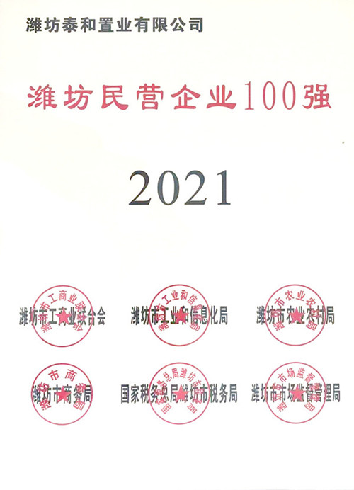 2021年11月18日下午,2021年濰坊民營企業(yè)100強(qiáng)發(fā)布會(huì)暨民營企業(yè)家座談會(huì)在市級(jí)機(jī)關(guān)綜合辦公大樓召開,市委副書記、市長劉運(yùn)出席會(huì)議并頒獎(jiǎng)。會(huì)上,發(fā)布了 2021年濰坊民營企業(yè)100強(qiáng)榜單及分析報(bào)告。集團(tuán)公司總裁朱九洲作為百強(qiáng)民營企業(yè)代表領(lǐng)取獎(jiǎng)牌。集團(tuán)子公司泰和置業(yè)有限公司也再次入圍百強(qiáng)榜單。此前,2021年8月27日,山東省工商聯(lián)十三屆八次常委會(huì)議暨2021年山東民營企業(yè)100強(qiáng)發(fā)布會(huì)在濟(jì)南召開。會(huì)上,2021年山東民營企業(yè)100強(qiáng)名單及各榜單公布。集團(tuán)公司再次入選山東民營企業(yè)100強(qiáng)榜單。 民營企業(yè)100強(qiáng)的評(píng)選目的,是為了更好發(fā)揮典型企業(yè)示范引領(lǐng)作用,助力濰坊市新舊動(dòng)能轉(zhuǎn)換,營造非公有制經(jīng)濟(jì)健康發(fā)展和非公有制經(jīng)濟(jì)人士健康成長的良好氛圍。 ![]() ![]() ![]() ![]() |