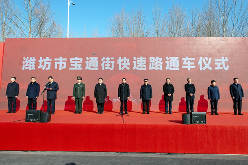 公元2022年1月1日上午,迎著新年第一縷陽光,濰坊這個蘊(yùn)藏著古老文明而又展現(xiàn)新時代蓬勃氣息的風(fēng)箏之都開啟了一年全新的征程。和煦的冬日暖陽沐浴著一群群奮斗的人們的笑臉。作為建設(shè)者的我們則在這一天又見證了一個光榮時刻的到來,濰坊市委、市政府為濰坊城區(qū)第一條快速路——寶通街高架快速路舉行隆重而簡約的開通慶典。