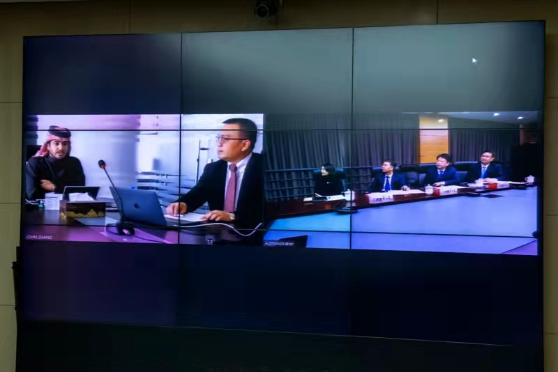 董事長(zhǎng)徐鵬強(qiáng)、總裁朱九洲等集團(tuán)領(lǐng)導(dǎo)與卡塔爾扎伯王爺舉行視頻會(huì)議
