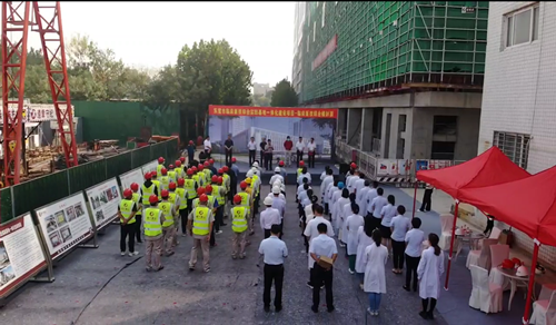 2022年9月28日上午9點58分,由集團四建公司總承包施工的東營市臨床醫(yī)技綜合實踐基地一體化建設(shè)項目——臨床醫(yī)技綜合樓封頂儀式在項目現(xiàn)場隆重舉行。 東營市人民醫(yī)院黨委書記徐新生、院長張振海、副院長岳長春,集團公司董事長徐鵬強、副總裁王建波,山東新開元建設(shè)項目管理有限公司董事長宗輝出席封頂儀式。東營市人民醫(yī)院黨委書記徐新生宣布“封頂”。 參加封頂儀式的還有:集團安裝公司總經(jīng)理劉志偉、裝飾幕墻公司總經(jīng)理付光文,四建公司副總經(jīng)理叢興杰、總經(jīng)理助理馬康文,建設(shè)、監(jiān)理、集團四建公司等相關(guān)單位員工代表100余人。