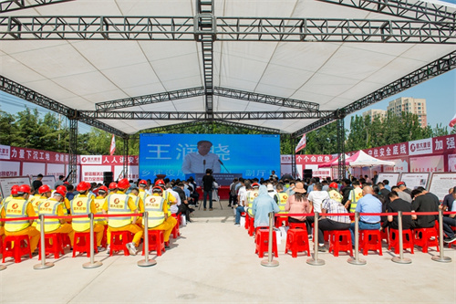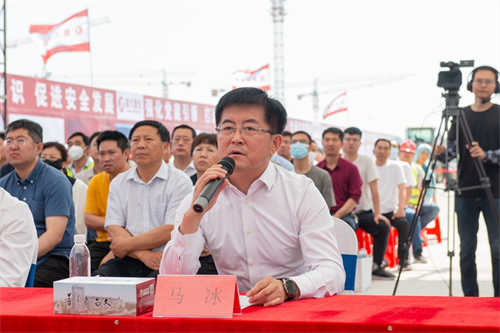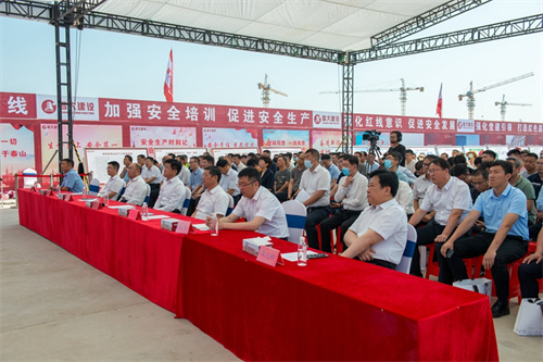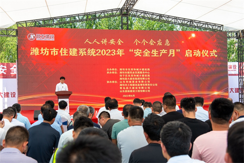 濰坊市住建系統(tǒng)“安全生產(chǎn)月”啟動儀式在集團項目現(xiàn)場舉行 總裁朱九洲出席