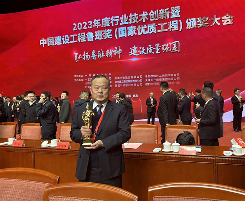 集團(tuán)總工程師房海 副總裁王建波北京領(lǐng)取魯班“小金人”