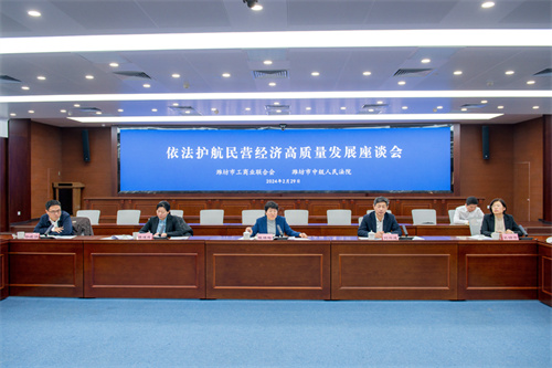 2024年2月29日上午,濰坊市依法護(hù)航民營(yíng)經(jīng)濟(jì)高質(zhì)量發(fā)展座談會(huì)在濰坊市中級(jí)人民法院會(huì)議室召開(kāi)。市政府副市長(zhǎng)、市工商聯(lián)主席陳端梅,市委統(tǒng)戰(zhàn)部副部長(zhǎng)、市工商聯(lián)黨組書(shū)記劉興成,市工商聯(lián)黨組成員副主席譚述霞出席會(huì)議。市委政法委、市工商聯(lián)相關(guān)工作人員,商會(huì)會(huì)長(zhǎng)代表、企業(yè)家代表、民營(yíng)企業(yè)法務(wù)中心代表參加會(huì)議。集團(tuán)公司總裁朱九洲出席會(huì)議并作交流發(fā)言,代表企業(yè)家感謝市中院及法院系統(tǒng)在依法護(hù)航企業(yè)發(fā)展過(guò)程中給予的支持,同時(shí)建議法院系統(tǒng)繼續(xù)依法對(duì)民營(yíng)企業(yè)提供法律保護(hù)等。