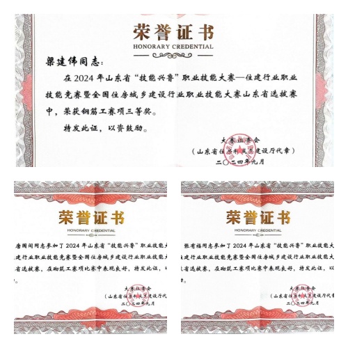 2024年9月8日-12日,山東省住房和城鄉(xiāng)建設廳舉辦2024年山東省“技能興魯”職業(yè)技能大賽,集團公司派員參加鋼筋工和砌筑工賽項,并取得鋼筋工三等獎、砌筑工優(yōu)秀獎的好成績。