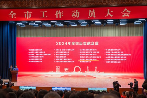 新春擂鼓走在前,乘勢而上挑大梁。2025年2月6日上午,全市工作動(dòng)員大會(huì)召開。會(huì)議由市委副書記、市長劉建軍主持,市委書記劉運(yùn)發(fā)表重要講話。會(huì)議對“2024年度突出貢獻(xiàn)企業(yè)”、“2024年度高成長產(chǎn)值倍增企業(yè)”等獎(jiǎng)項(xiàng)進(jìn)行了表揚(yáng)。集團(tuán)公司總裁朱九洲出席主會(huì)場會(huì)議并代表集團(tuán)公司接受市委、市政府頒獎(jiǎng)。?